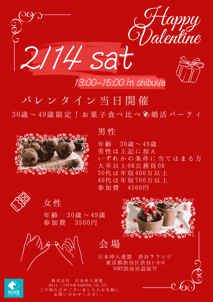 バレンタイン当日開催🍫30歳~49歳限定!お菓子食べ比べ🍪婚活パーティ